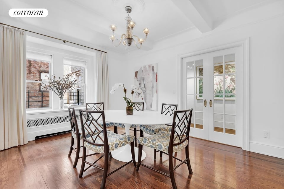 This bright and elegant three-bedroom, two-and-a-half-bathroom custom-designed home is ideally positioned on a very special Museum and Central Park block in one of the finest coops on the Upper West Side. A northern exposure and oversized windows showcase open views of the extraordinary architectural beauty of the Natural History Museum and the lush, landscaped grounds that surround it. A full custom gut renovation of this classic 7-room home blends the elegance of prewar detail and scale seamlessly with modern comforts and high-end finishes, while optimizing the flow for gracious living. Contemporary comforts include two-zone central air conditioning, top-of-line professional appliances, a full laundry room, solid wood, pocket and French doors, marble bathrooms and exceptional custom storage throughout. Stunning architectural detail includes refinished hardwood floors with border inlay, high-beamed ceilings and lovely crown and baseboard moldings. The well-planned layout is beautifully proportioned and provides a fabulous flow for entertaining as well as private living. The floor plan includes a spacious living room overlooking the Museum, formal dining room, eat-in kitchen with butler’s pantry, powder room, laundry room and a separate resident’s wing with three oversized bedrooms (two bedrooms overlook the Museum) and two full bathrooms. The entry foyer offers a lovely first impression, is open to all formal rooms and features two large custom closets, one walk-in large enough to be considered a mud room. The bright and elegant living room showcases exceptional open north-facing vistas of the Natural History Museum with a wall of new, custom built-in shelving. The formal dining room is very spacious and can accommodate large scale entertaining just off the kitchen. The windowed eat-kitchen is stunning and fully equipped with top-of-line stainless appliances including Viking 4-burner and grill gas range oven and Viking hood vent, Bosch dishwasher and Sub-Zero refrigerator. Abundant custom cabinetry provides plentiful storage with butler’s pantry complemented by marble counters and ceramic tile backsplash. A lovely built-in breakfast banquette is perfect for casual dining and entertaining. In addition, a beautiful powder room with marble vanity and custom cabinet and full laundry room with washer and dryer completes the space. The sun-filled primary suite faces north drawing in lovely natural light and features open Museum views and a wall of new closet storage as well as a custom-fitted walk-in closet. The newly renovated, primary bathroom is flush with marble surfaces and floor, a floating vanity, Waterworks fixtures and walk-in glass shower. Both the second and third bedrooms are very spacious with custom closets and have a full bathroom in the shared hallway with Carrera marble floor. The third bedroom also faces the Museum. Interior renovations done by Deborah Burke Design. An elegant prewar landmarked building in a superb location, residents enjoy excellent service with canopied entrance, part-time doormen, live-in superintendent, individual storage bins, bicycle storage and laundry facilities. The residents also enjoy a new landscaped roof deck with incredible city and Central Park views. Each floor offers semi-private landings with only 2 apartments per floor. Pets are permitted with board approval. Sunday – Thursday – 3 – 11 pm and Friday – Saturday – 4 – 12 am