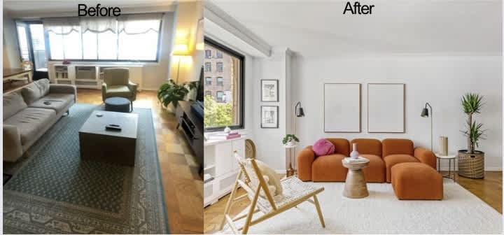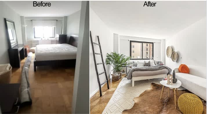 Before and afters from our Penthouse listing at 50 Avenue A, staged by Katerina Mishelle Design.